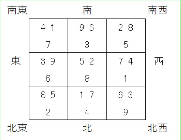 上記の例に基づくと、仮に南が金運に良い箇所だったとしても、時間が経つと数字の吉凶が変わるために、南は金運に適さない場所となり、今度は北が金運に適した場所となる可能性があります。
