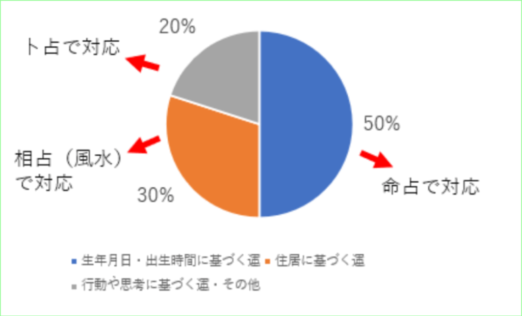 なぜ上図の3種類に含めていないかというと、方位術は使用した時から一定の期間運気を底上げするものであり、仮に悪い運気があったとして、その凶を抜本的に綺麗にするというものではないからです。