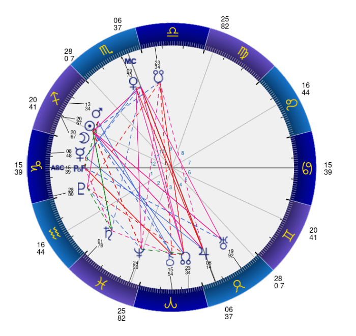 この射手座♐と魚座♓と関係が深い木星♃はICに位置し、重ね重ね木星♃色が強い配置に。