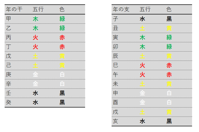 例えば、癸の年が良ければ黒い服を、卯の年が良ければ緑色の服を、といった具合です。