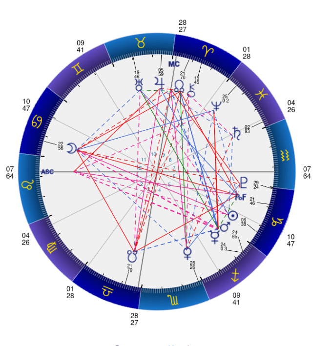 そして、占星術では自分の生まれた瞬間の太陽☉の位置に到達した瞬間の星空をソーラーリターン図・太陽回帰図とも呼び、その1年間のその方の運勢を判断するのに大きな影響を及ぼすとされています。