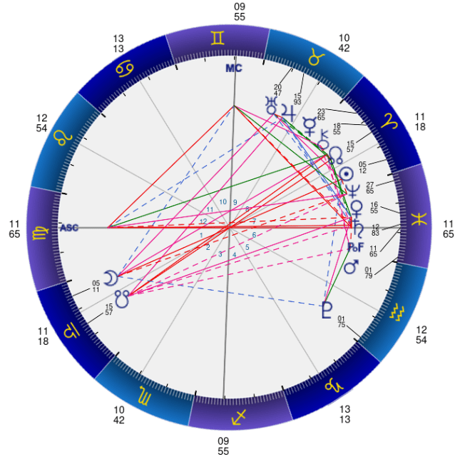 火星♂は個人の闘争本能や戦い、さらには主張など自分の気持ちに従って何かを獲得しようとするエネルギーを表しますが、同時に怒りや対人関係面での衝突を表すこともあります。